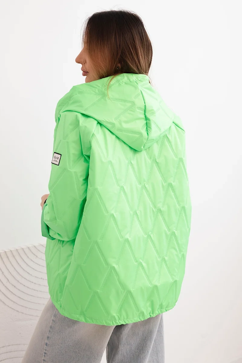 Damenjacke Frühlings gesteppte mit Kapuze und Reißverschluss grün neon