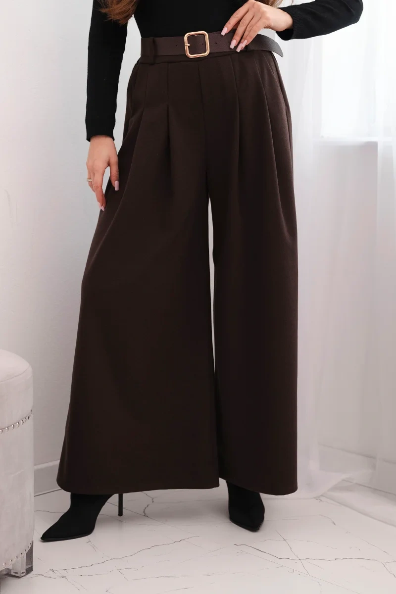 Ein zusätzlicher Vorteil ist der breite Gürtel mit Schnalle im Set, der die Taille betont und der Garderobe einen modischen Akzent verleiht. Die Hose verfügt über elegante Falten an der Vorderseite, was ihr ein ausgefeilteres Aussehen verleiht – sie eignet sich sowohl für den Alltag als auch für die Arbeit oder Geschäftstreffen.