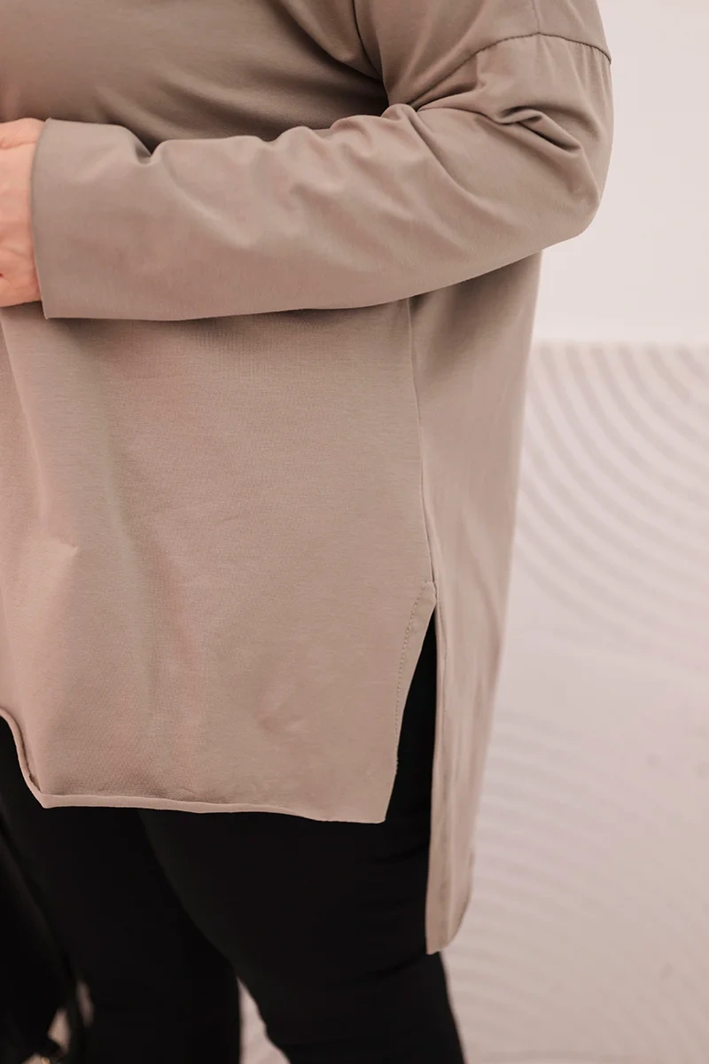 Dieses Damenbluse in Plus Size vereint Komfort, modernen Schnitt und hochwertige italienische Verarbeitung. Das Modell hat einen lockeren, bequemen Schnitt und einen verlängerten Rücken, der sich schön an die Silhouette anpasst und volle Bewegungsfreiheit bietet. Die weiche, elastische Baumwolle sorgt dafür, dass die Bluse angenehm zu tragen ist und sowohl im Alltag als auch in lässigen Stylings hervorragend geeignet ist.