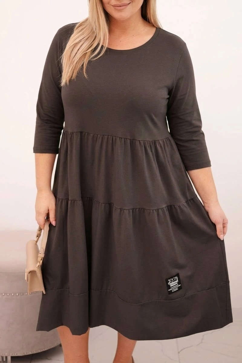 Damen Baumwollkleid in Übergrößen mit Rüschen und umgeschlagenem Ärmel braun