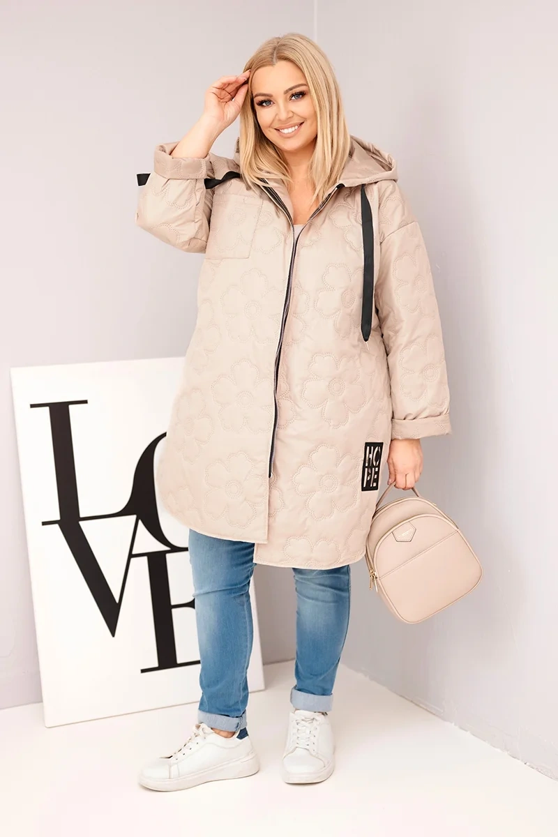 Diese Damen Plus Size gesteppte Jacke aus Polyester ist das ideale Modell für die Übergangszeit. Der leicht oversized Schnitt sorgt für Komfort und Bewegungsfreiheit, während das interessante Steppmuster ihr einen modernen Stil verleiht. Das Modell verfügt über eine praktische Kapuze mit breiten Schnüren, einen bequemen durchgehenden Reißverschluss und ein dekoratives HOPE-Patch, das dem Ganzen einen modischen Charakter verleiht. Die Jacke eignet sich hervorragend für den Alltag – zu Jeans, Jogginghosen oder lässigen Outfits.