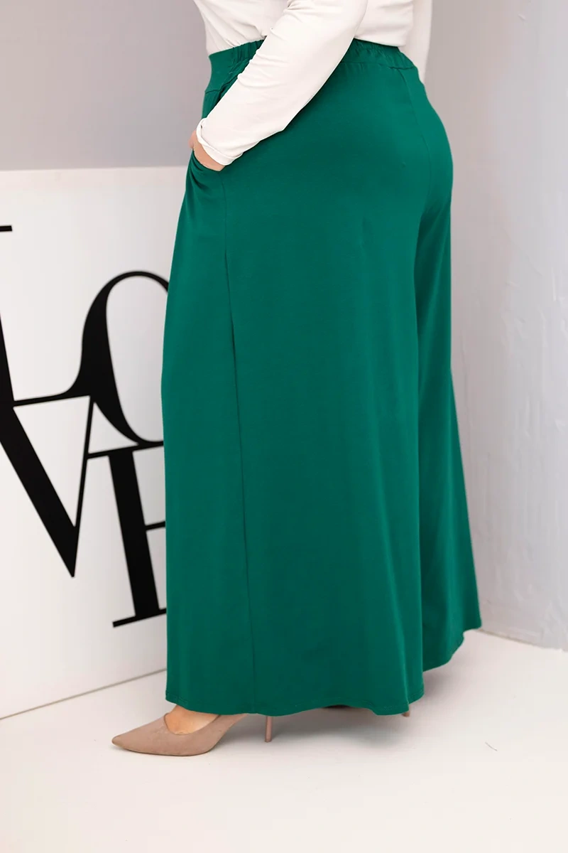 Damen Baumwollhose Plus Size mit weitem Bein und lockerer Passform dunkelgrün