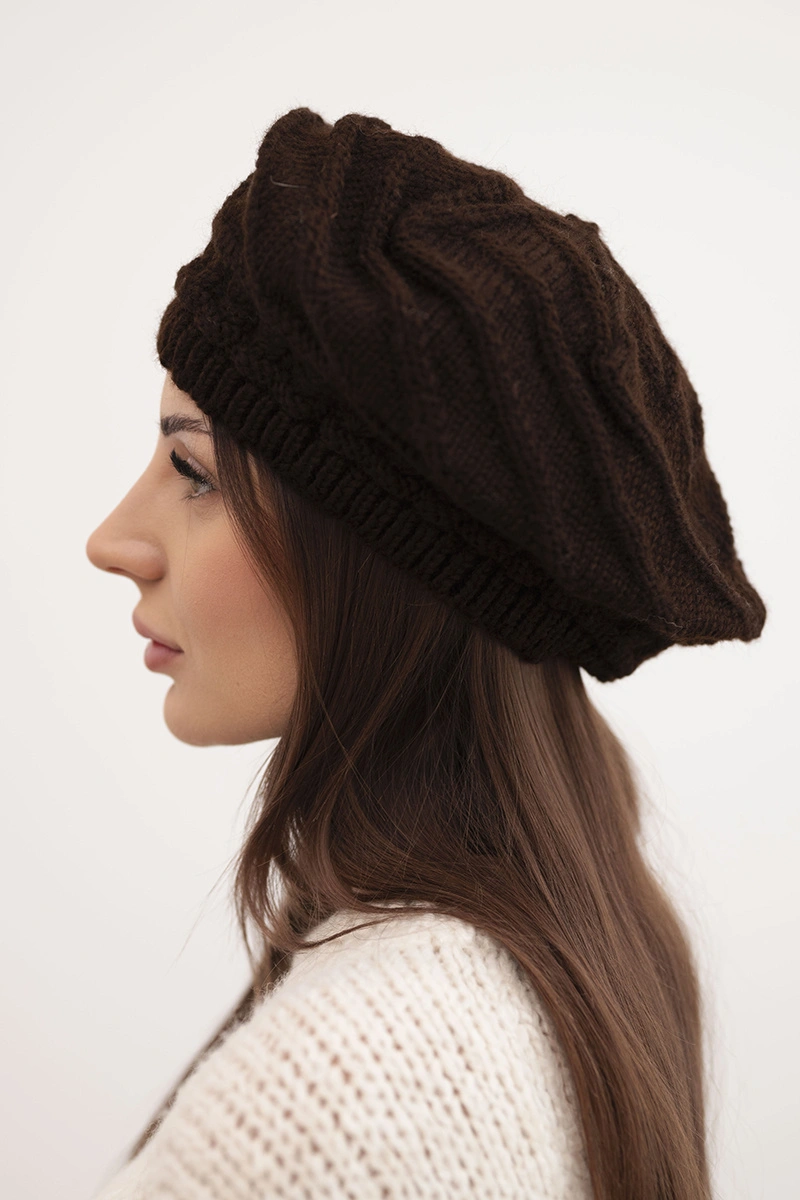 Damenwintermütze aus Wolle in lockerer Passform mit dekorativem Muster K378 braun