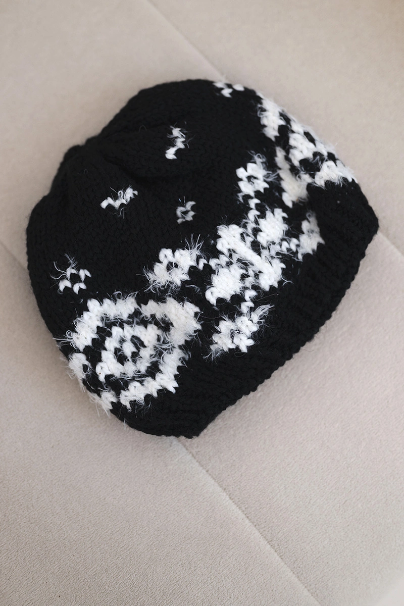 Warme Damenmütze im klassischen Winterstil mit auffälligem norwegischem Muster. Hergestellt aus weichem und angenehm anzufassendem Strickstoff mit hohem Wollanteil, ideal für kalte Wintertage. Der dicke Strick und der elastische Bund sorgen für eine perfekte Passform und effektiven Schutz vor Wind und Kälte.