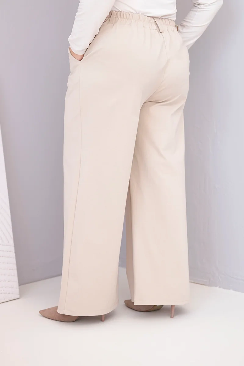 Damen Plus-Size-Hose mit weitem Bein und hohem Bund beige