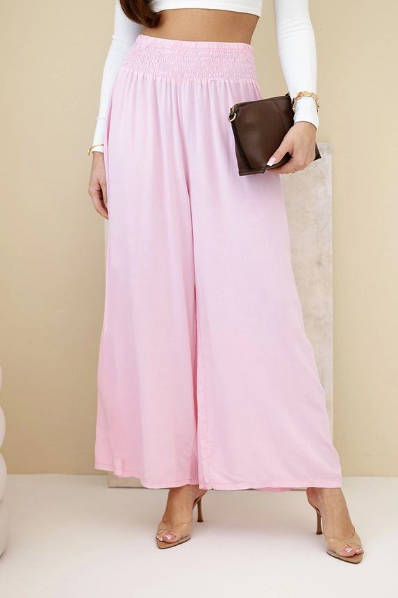 Wenn du bequeme und stylische Hosen für den Alltag oder den Urlaub suchst, sind diese Damen-Palazzohosen genau das Richtige! Hergestellt aus 100 % leichter, atmungsaktiver Viskose bieten sie nicht nur hohen Tragekomfort, sondern fallen auch wunderschön am Körper. Das weite Bein und der ausgestellte Schnitt verleihen jeder Bewegung Leichtigkeit und Eleganz, während der elastische Bund sich perfekt an die Taille anpasst. Ideal für Spaziergänge, Einkäufe oder den Strand – einfach ein schlichtes Top dazu und fertig! Ein vielseitiges Modell, das in keinem Kleiderschrank fehlen sollte. Die Größe ist universell und passt Frauen mit Größe S, M oder L.