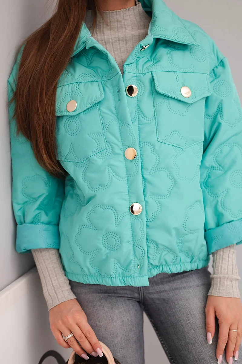 Frühlingsjacke Damen gesteppt mit Blumenmuster mintgrün