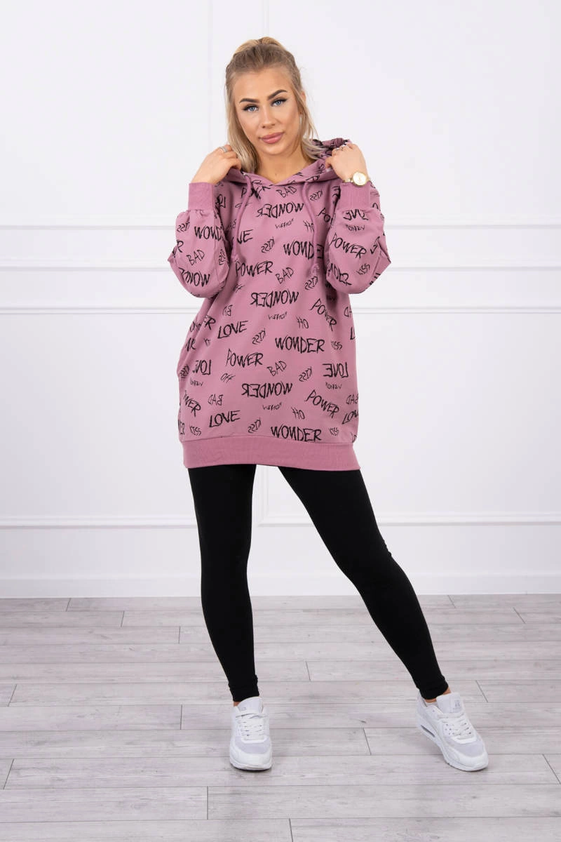 Džemperis su užrašu tamsiai rožinės spalvos