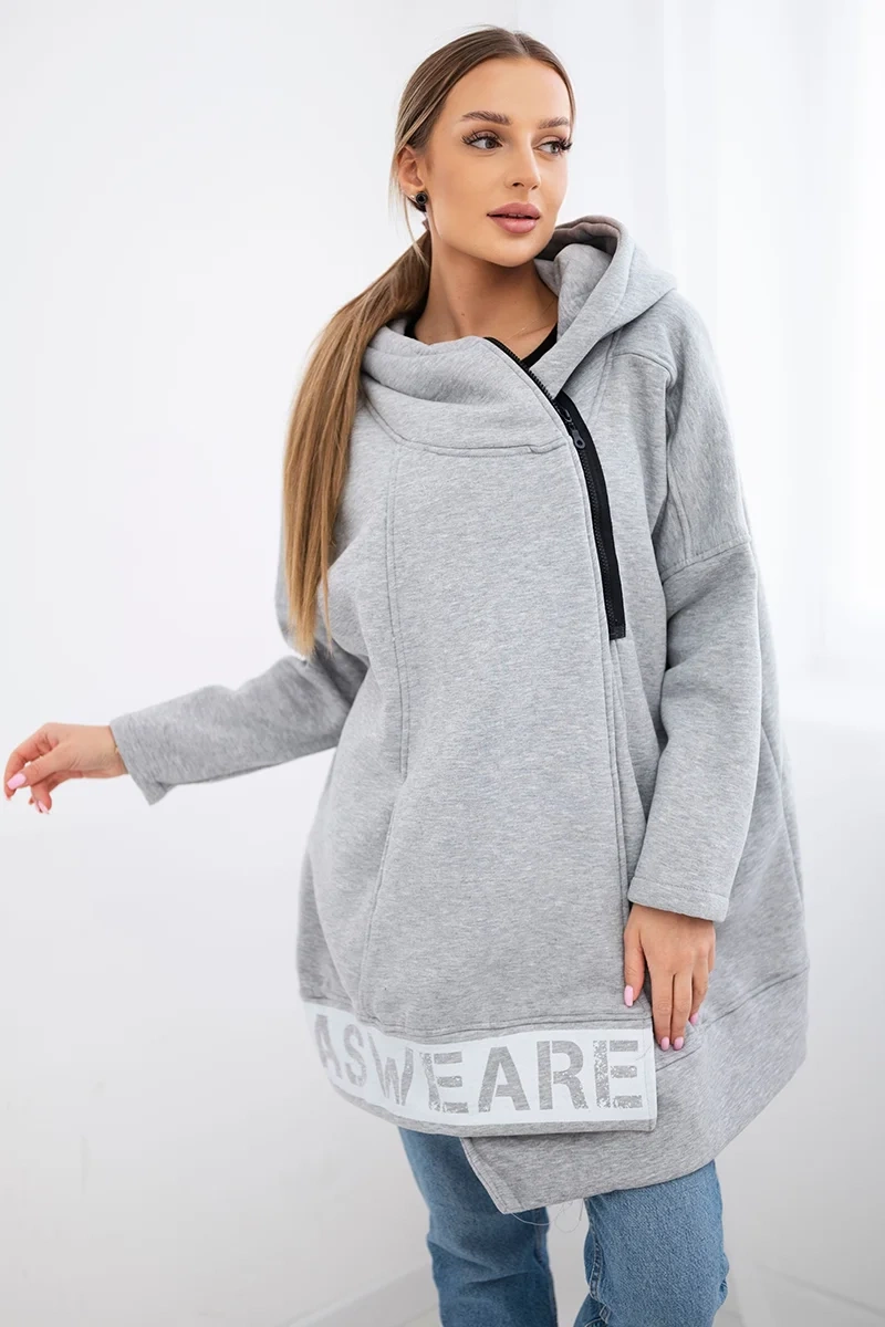 Šiltas džemperis su užtrauktuku pilkos spalvos