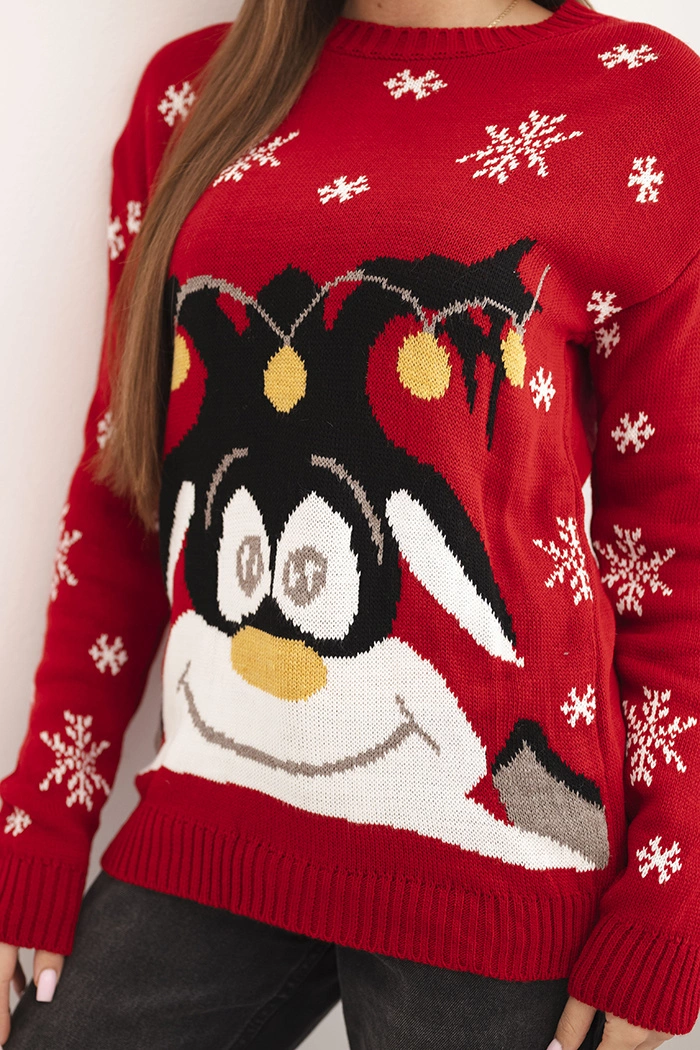 Prezentujemy Państwu piękny sweter ze świątecznym motywem. Sweter posiada długie rękawy. Sweter sprawdzi się również idealnie jako prezent świąteczny. Ten sweter z pewnością wyczaruje dla Ciebie odpowiednią świąteczną atmosferę. Sweter wykonany jest z przyjemnego i miękkiego materiału. Rozmiar jest uniwersalny i będzie odpowiedni dla Pań w rozmiarze M, L, XL.