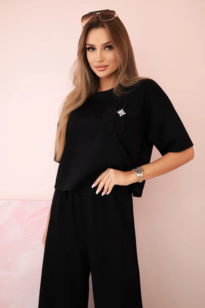 Atraskite unikalų komplektą, kuris sujungia neprilygstamą sviestinio audinio švelnumą su stilingomis detalėmis, sukuriant tobulą aprangą bet kokiai progai. Palaidinė, pagaminta iš minkštos ir jaukios sviestinio audinio medžiagos, užtikrina visos dienos patogumą, o subtilus gėlių akcentas suteikia romantiškumo. Jos kirpimas garantuoja judėjimo laisvę, todėl ji puikiai tinka tiek kasdieniams išėjimams, tiek susitikimams ar jaukiems vakarams namuose. Komplektą papildo kelnės, sukurtos atsižvelgiant į šiuolaikišką dizainą ir patogumą – kruopščiai pritaikytas kirpimas ir aukšta kokybė užtikrina harmoningą, elegantišką visumą. Rinkitės sviestinio audinio komplektą ir mėgaukitės prabangiu komfortu bei madingu stiliumi, kuris kiekvieną dieną pabrėš jūsų unikalų charakterį. Dydis yra universalus ir tinka moterims, dėvinčioms S, M arba L dydžius.