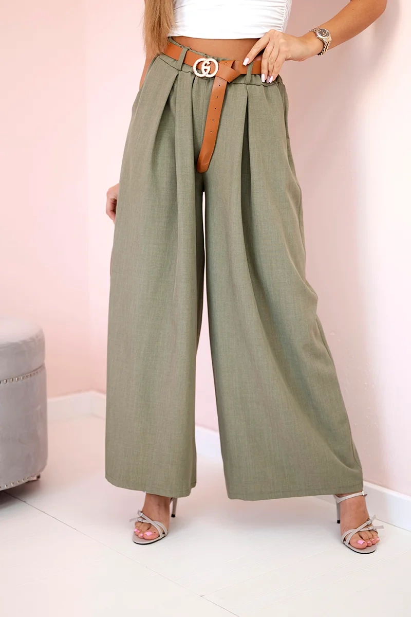 Kelnės su plačiarankiais diržais Šviesus chaki