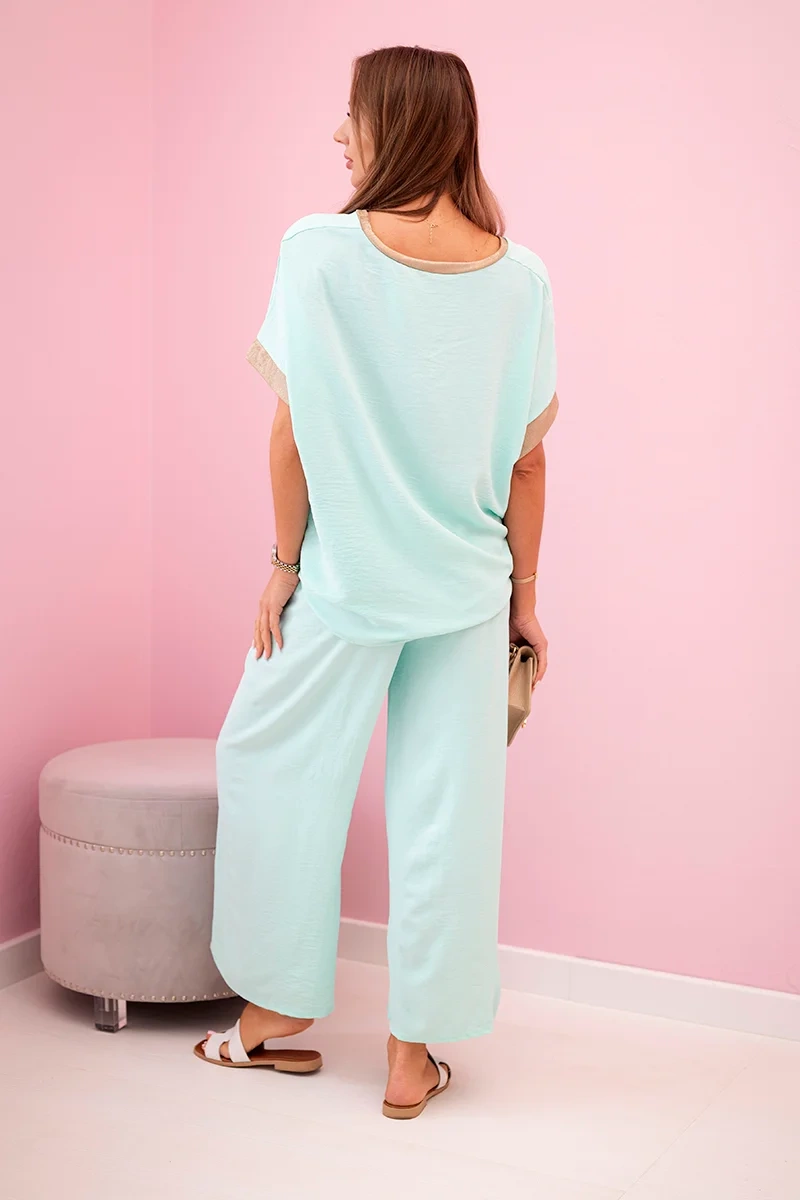 Viskozės komplektas su auksiniu apvadu mėta