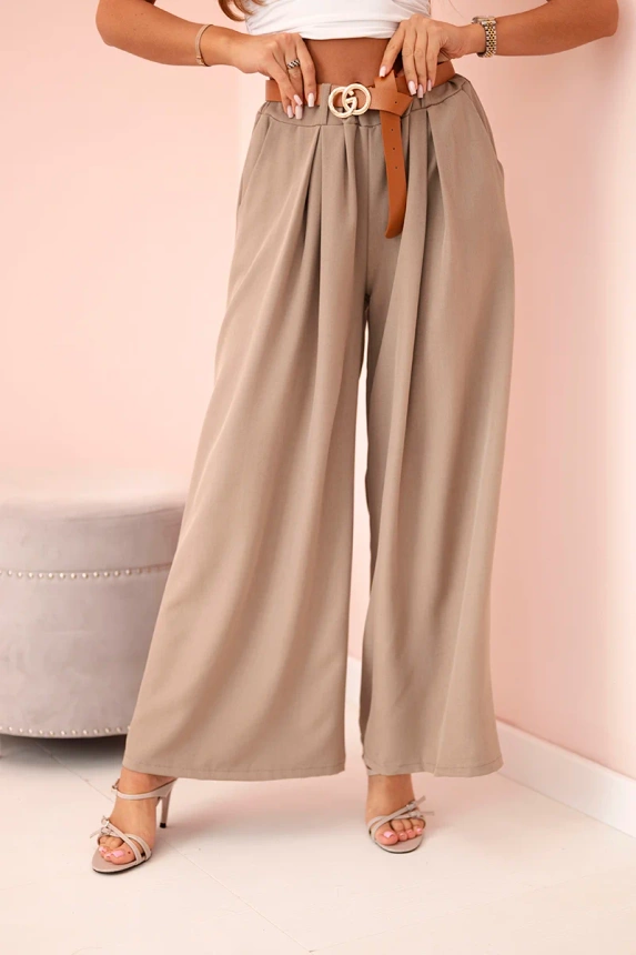 Stilingos plačių kelnių modelio kelnės – puikus pasirinkimas moterims, vertinančioms komfortą ir madingą išvaizdą. Pagamintos iš aukštos kokybės medžiagos, jos puikiai priglunda prie figūros ir pabrėžia jos privalumus. Komplekte esantis diržas leidžia idealiai pritaikyti liemens apimtį, suteikdamas elegantišką įvaizdį. Dėl plačių kelnių modelio šios kelnės atrodo itin įspūdingai ir kartu užtikrina judėjimo laisvę. Puikiai tinka tiek kasdieniam nešiojimui, tiek oficialioms progoms – puikiai dera su elegantiška palaidine, marškiniais ar prigludusiu megztiniu. Universalus dydis tinka moterims, dėvinčioms S, M arba L dydį.