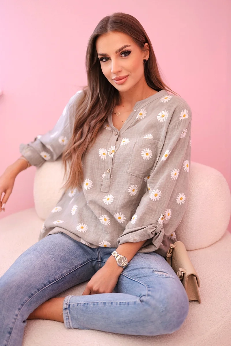 Ieškote stilingų, patogių ir universalių marškinių? Šie marškiniai su ramunėlių raštu – puikus pasirinkimas bet kokiai progai! Pagaminti iš lengvos, kvėpuojančios medžiagos, idealiai tinka pavasariui ir vasarai. Laisvas kirpimas užtikrina judėjimo laisvę, o subtilus gėlių raštas suteikia moteriško žavesio. Ilgas rankoves galima atraitoti, kad pritaikytumėte prie savo stiliaus.