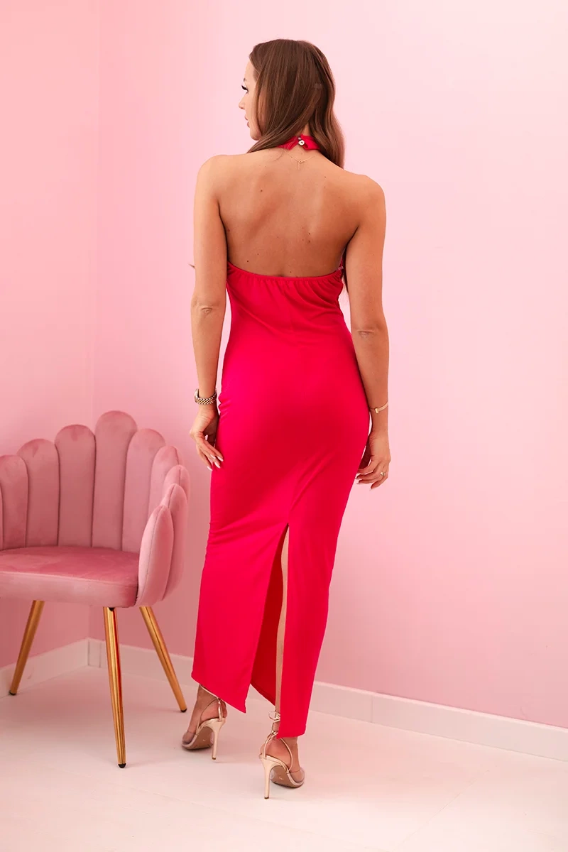 Moteriška suknelė su strappy atspaudu su kaklaraiščiu fuksija