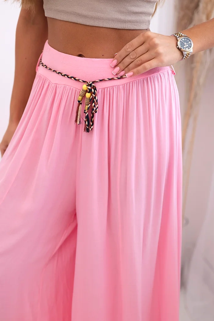 Moteriškos plačios kojos viskozės kelnės saldainiai rožiniai