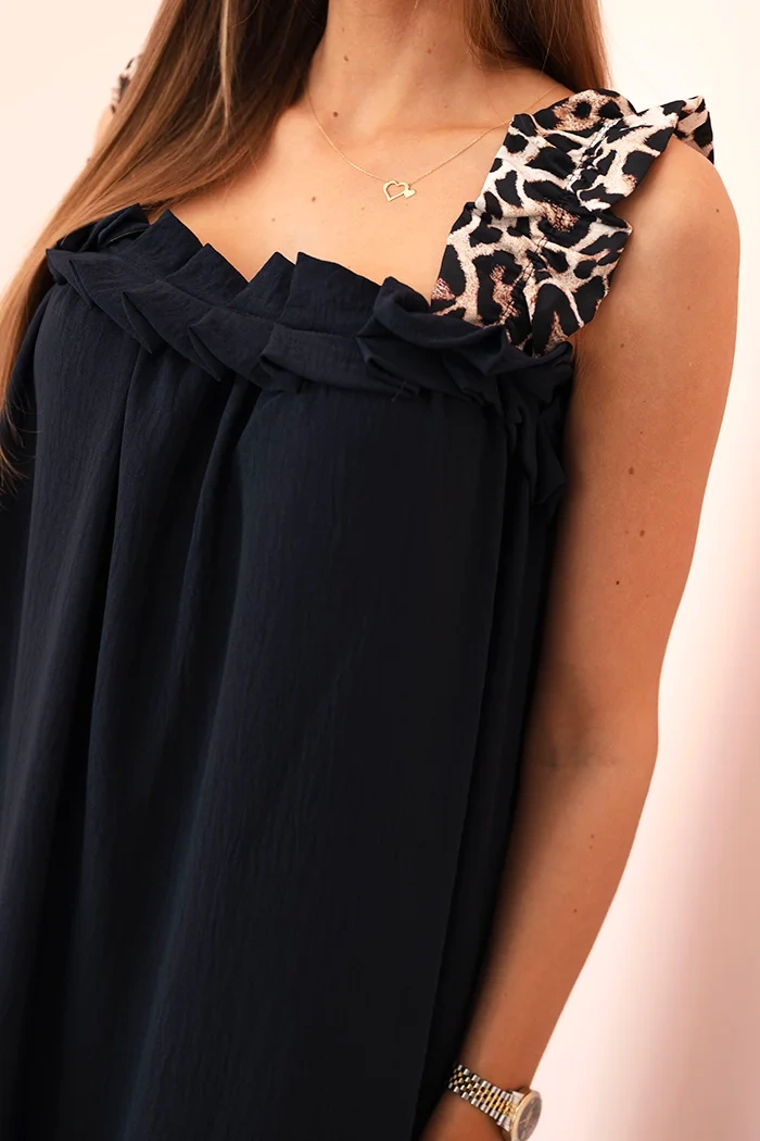 Moteriška suknelė su leopardo rašto dirželiais tamsiai mėlyna