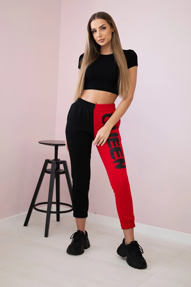 Šios išskirtinio dizaino moteriškos sportinės kelnės su užrašu „QUEEN“ – puikus pasirinkimas moterims, kurios vertina komfortą ir nori išsiskirti. Dviejų spalvų dizainas traukia akį ir suteikia aprangai originalumo – idealiai tinka kasdienai, laisvalaikiui su draugais ar savaitgalio poilsiui. Tamprus juosmuo ir maloni prisilietimui medžiaga garantuoja komfortą visą dieną. Kelnės puikiai dera su paprastais marškinėliais ir džemperiais, sukurdamos stilingą sportiškai-miesto įvaizdį. Dėl užrašo „QUEEN“ ant klešnės kiekviena moteris jausis ypatinga ir pasitikinti savimi. Dydis yra universalus ir tiks dėvinčioms S, M ar L dydžius.