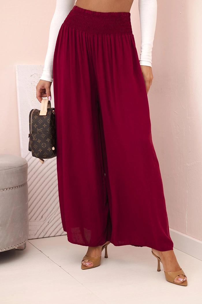 Jei ieškai patogių ir stilingų kelnių kasdienai ar atostogoms, šios moteriškos palazzo kelnės – puikus pasirinkimas! Pagamintos iš 100 % lengvos, orui pralaidžios viskozės, jos ne tik suteikia komfortą dėvint, bet ir gražiai krenta ant silueto. Platūs klešnės ir platėjantis kirpimas suteikia judesiui lengvumo ir elegancijos, o elastingas juosmuo puikiai prisitaiko prie liemens. Puikiai tinka pasivaikščiojimams, apsipirkimams ar poilsiui paplūdimyje – tiesiog pridėkite paprastą palaidinę ir pasiruošę! Tai universalus modelis, kurį verta turėti savo garderobe. Dydis yra universalus ir tinka S, M arba L dydžio moterims.