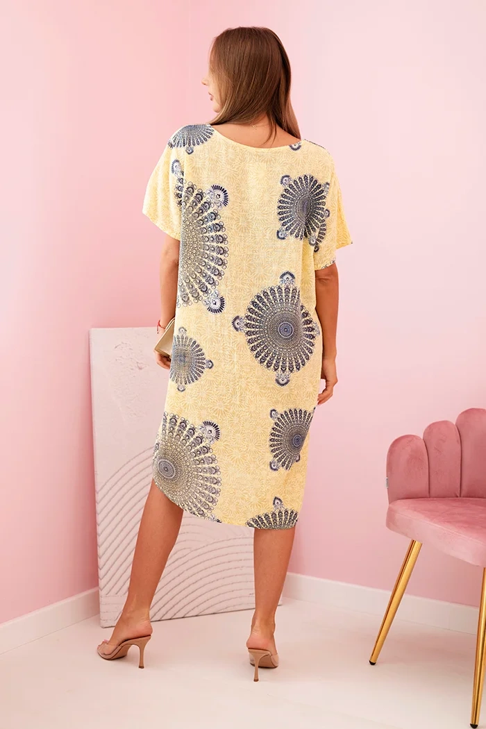 Moteriška medvilninė suknelė su rytietišku raštu geltonas