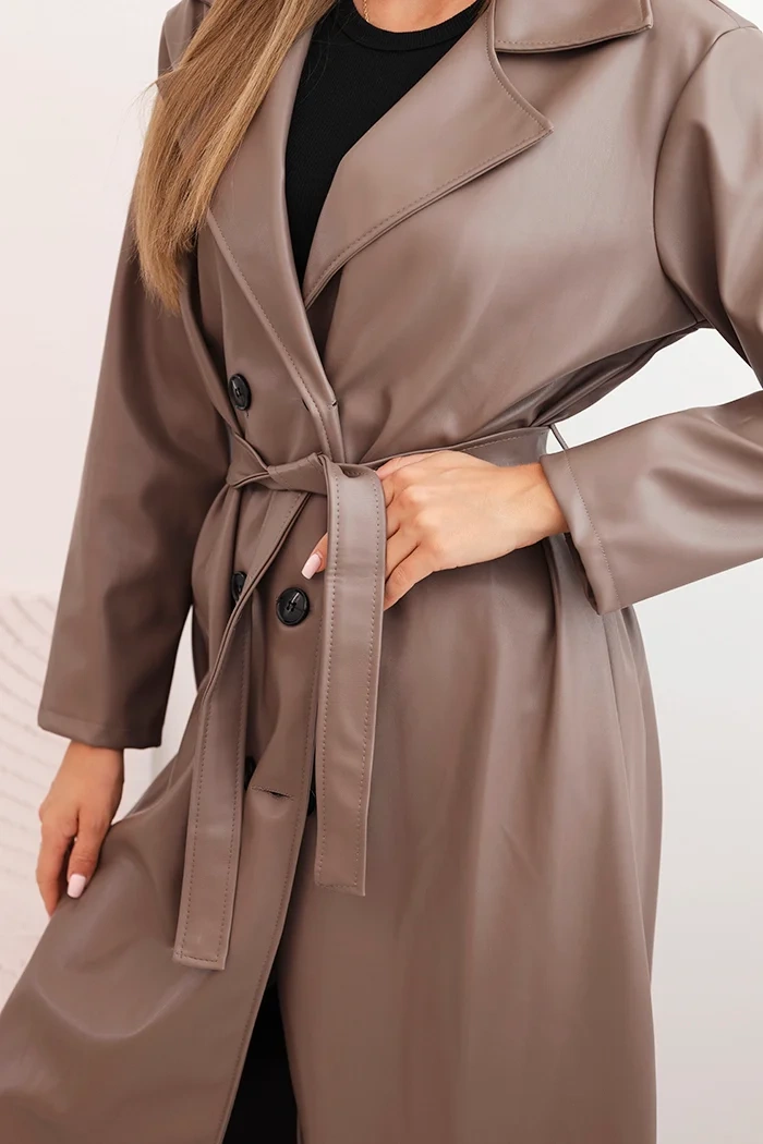 Moteriškas trench paltas iš eko odos su diržu ir apykakle fango