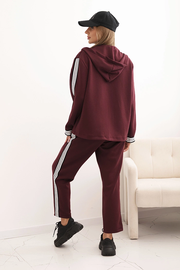 Moteriškas komplektas su viskoze, sportiniu švarku ir juostele bordo