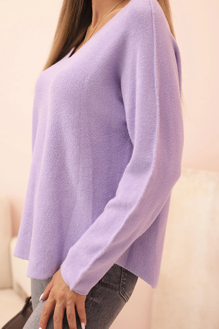 Moteriškas megztinis su viskoze V formos iškirpte violetinis