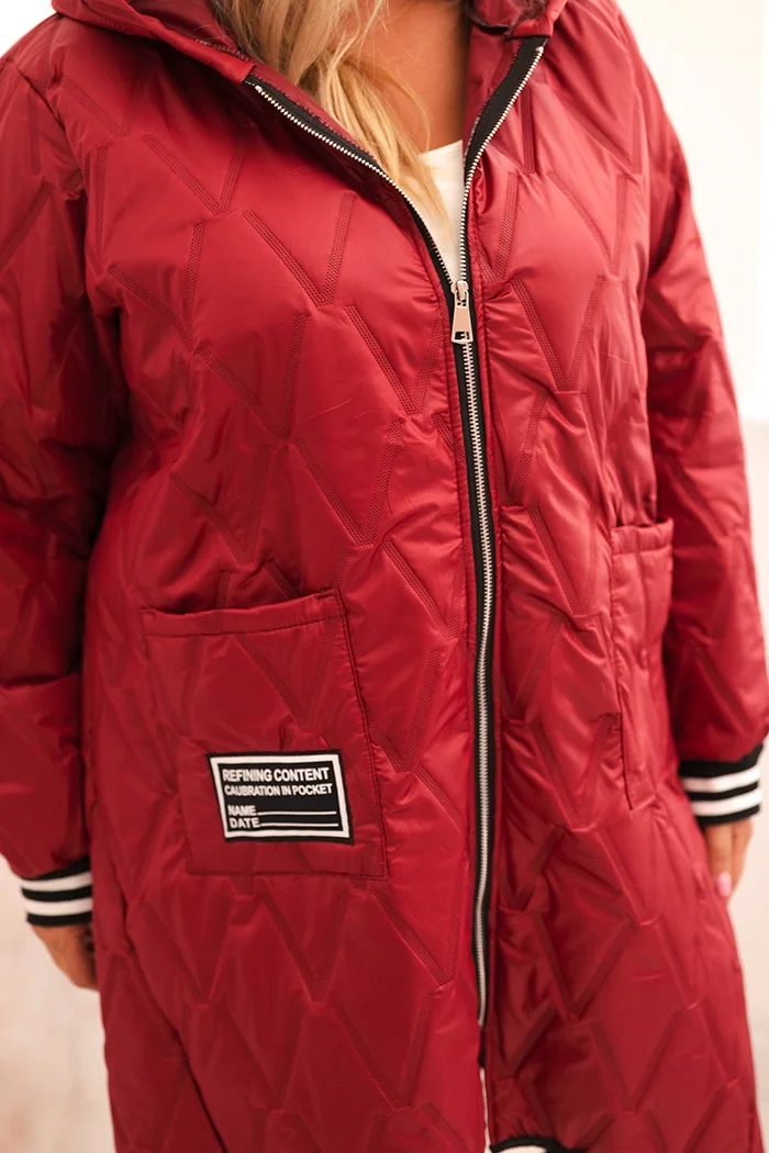 Moteriška plius dydžio pamušalinė striukė su kapišonu ir sportinėmis rankogaliais bordo