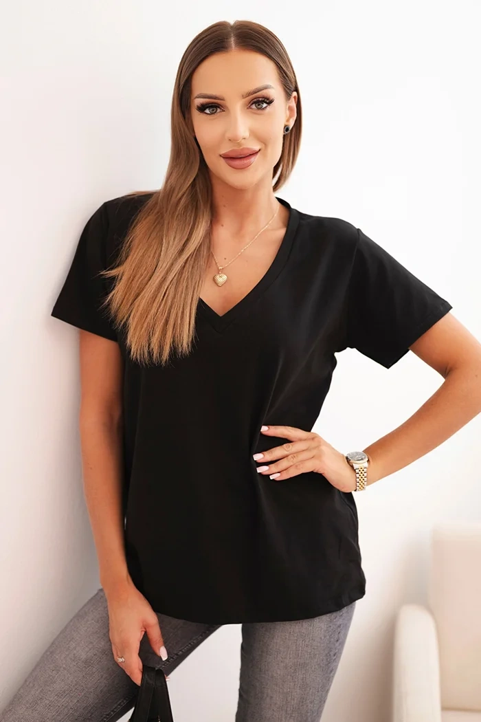 Ieškai klasikinės ir patogios bluzelės, kuri tiktų prie visko? Moteriška bluzelė su V formos iškirpte ir trumpomis rankovėmis yra puikus pasirinkimas kasdienai. Pagaminta iš minkštos medžiagos su elastano priedu, ji puikiai priglunda prie figūros ir užtikrina komfortą visą dieną. Jos minimalistinis, bazinis stilius leidžia lengvai priderinti ją prie džinsų, sijonų ar šortų. Ji puikiai tiks tiek darbui, tiek pasivaikščiojimams ar susitikimams su draugais. Dydis yra universalus ir tiks moterims, turinčioms S, M arba L dydį.