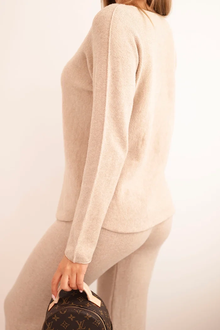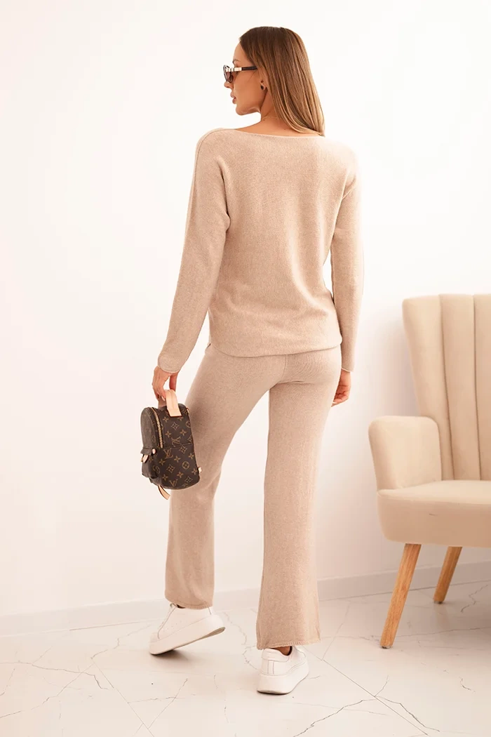 Moteriškas megztinis su plačiomis kelnėmis ir ilgomis rankovėmis bežinis