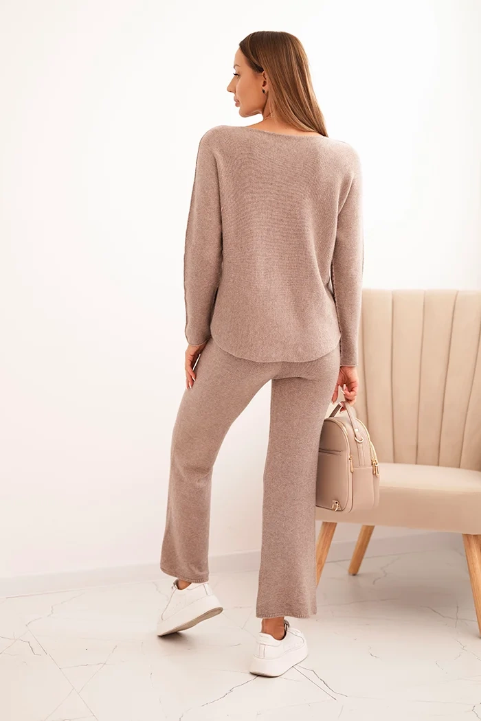 Šis moteriškas komplektas yra ideali pasiūlymas moterims, kurios vertina komfortą ir stilių kasdienėse aprangose. Pagamintas iš minkštos, elastingos medžiagos, komplektą sudaro klasikinė ilgomis rankovėmis palaidinė ir laisvo kirpimo kelnės su plačiais šonais, kurios užtikrina visišką judėjimo laisvę. Lygus paviršius ir neutralus dizainas daro komplektą nepaprastai universaliu – puikiai tinka tiek namuose, tiek pasivaikščiojimams ar savaitgalio poilsiui.
