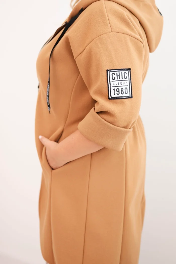 Dėl oversize kirpimo jis puikiai pritaikomas prie figūros ir užtikrina patogumą dėvint. Madingi akcentai, tokie kaip aplikacijos ir sportinis charakteris, suteikia visumai išskirtinį pobūdį.