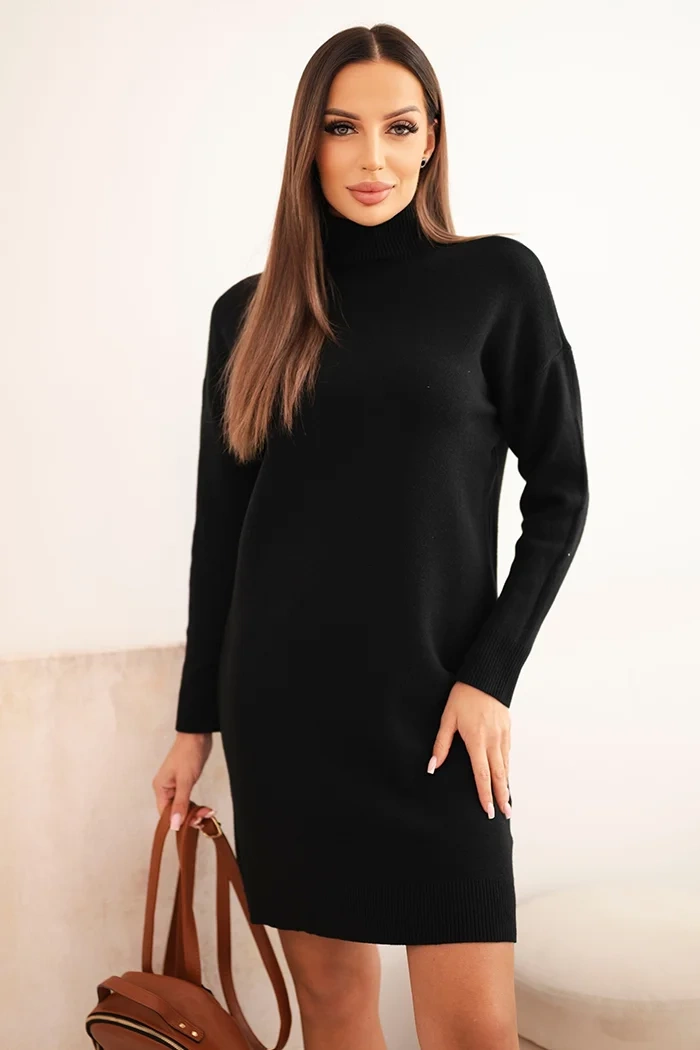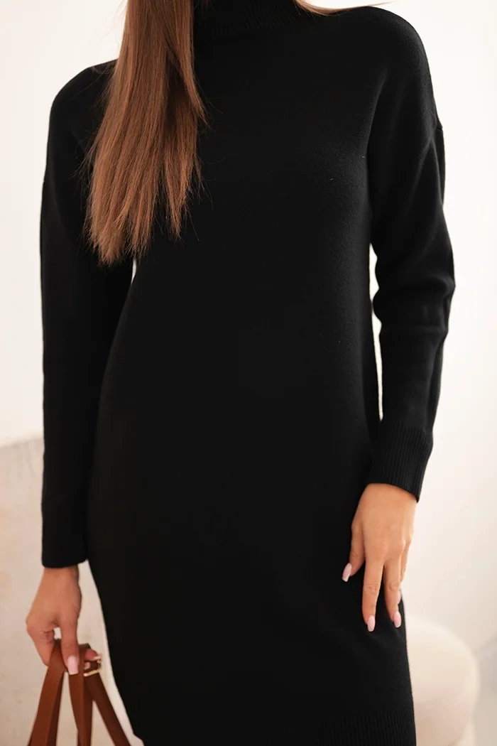 Moteriška megztinė su golfu ir kišene suknelė juoda