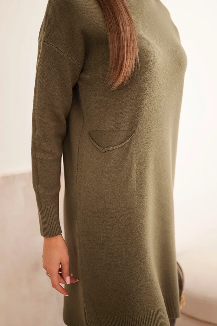 Ieškote madingos, bet kartu ir patogios suknelės vėsesniems orams? Moteriška megztinė suknelė su apykakle yra puikus pasirinkimas rudeniui ir žiemai! Pagaminta iš minkštos ir elastingos medžiagos, ji užtikrina komfortą visą dieną. Uždara apykaklė suteikia elegancijos ir saugo nuo šalčio, o dekoratyvinė kišenė priekyje suteikia jai originalumo.
