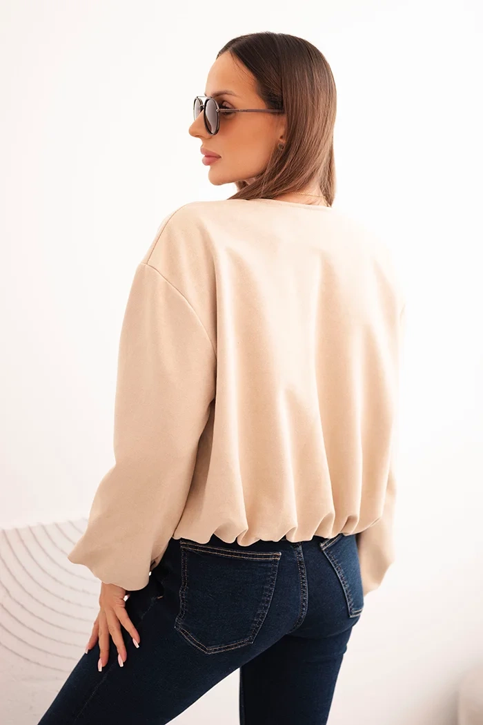 Stilinga moteriška striukė laisvu siluetu yra puikus pasirinkimas pereinamuoju sezonu, kai svarbu komfortas ir madingas įvaizdis. Pagaminta iš minkštos medžiagos su elastano priedu, ji puikiai prisitaiko prie figūros, užtikrindama judėjimo laisvę ir dėvėjimo patogumą. Striukė užsegama užtrauktuku, su elegantišku apvaliu iškirpimu ir šiek tiek pūstomis rankovėmis, puikiai tinka tiek kasdieniams, tiek laisvalaikio deriniams.