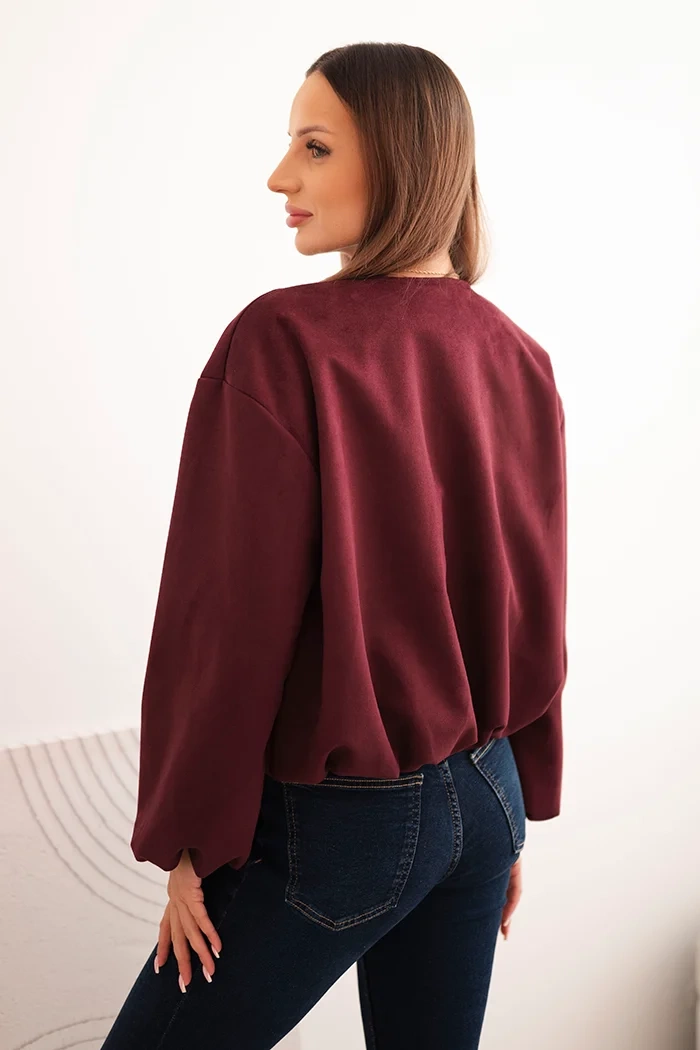 Moteriška striukė su užtrauktuku ir pūstomis rankovėmis bordo