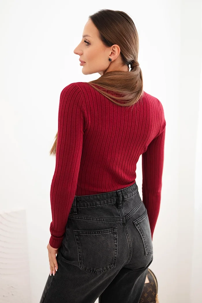 Stilinga moteriška bluzonė su raižyta struktūra yra puikus pasiūlymas moterims, vertinančioms minimalizmą ir patogumą. Modelis su ilgomis rankovėmis ir stovu puikiai tiks kaip bazė po švarku, kardiganu ar vienas su džinsais ir sijonu. Trumpesnis siluetas gražiai pabrėžia liemenį ir suteikia siluetui lengvumo.