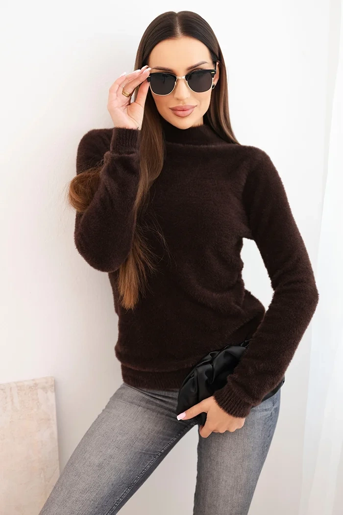 Moteriškas alpakos megztinis su pusiau golfu rudas