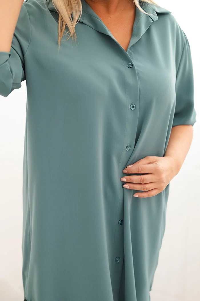 Moteriška marškininė suknelė Plus Size yra puikus elegancijos ir komforto derinys kasdieniam stiliui. Jos laisvas kirpimas leidžia puikiai priglusti prie silueto, užtikrinant visišką komfortą neatsižvelgiant į progą. Klasikinis apykaklė, mygtukų užsegimas visoje ilgyje ir praktiški 3/4 ilgio rankovės su galimybe pasukti daro šią suknelę universaliu pasirinkimu daugeliui sezonų.