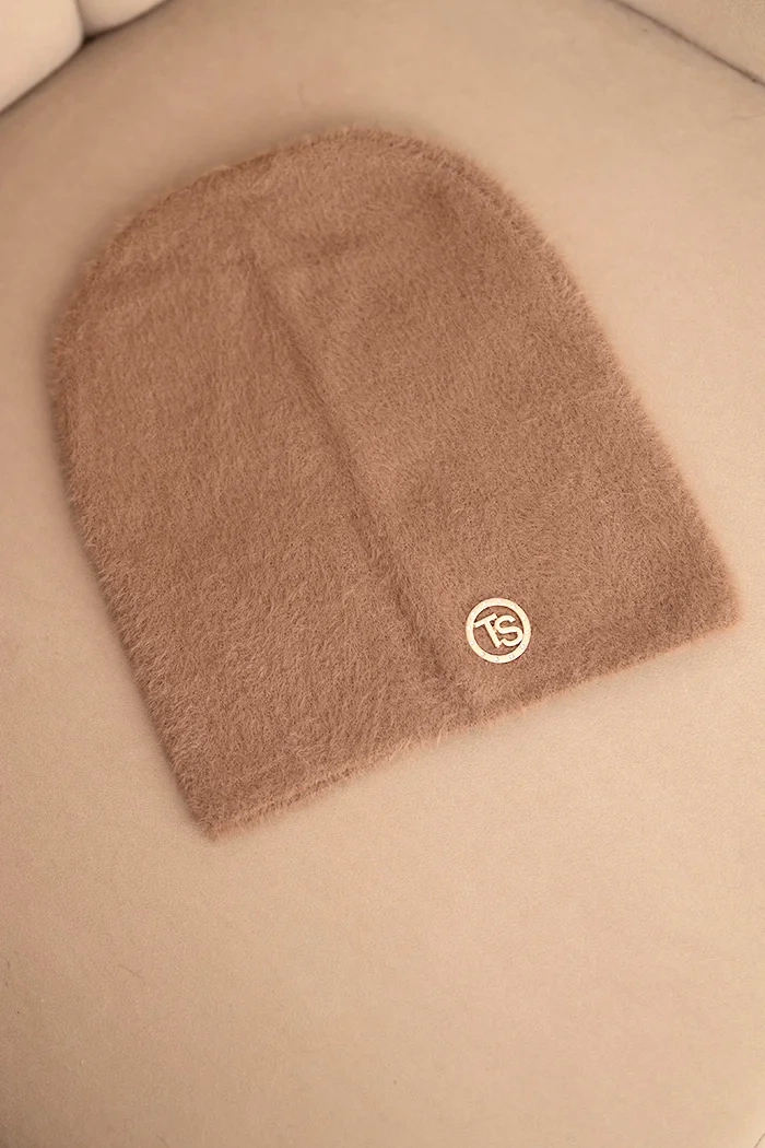 Minimalistinė ir elegantiška moteriška kepurė, pagaminta iš labai minkštos ir malonios liesti pūkuotos medžiagos. Priekyje subtilus dekoratyvinis ženkliukas su logo, kuris suteikia stilingą akcentą.