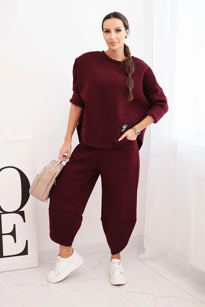 Šis moteriškas treniruotės komplektas yra ideali pasiūlymas vėsesnėms dienoms moterims, vertinančioms patogumą ir modernų stilių. Rinkinys susideda iš laisvos oversize tipo palaidinės ir kelnių su plačiomis kojomis, kurios užtikrina judėjimo laisvę ir madingą išvaizdą. Viskas pagaminta iš storesnio, tvirto audinio, kuris suteikia komfortą dėvint ir apsaugą nuo šalčio.