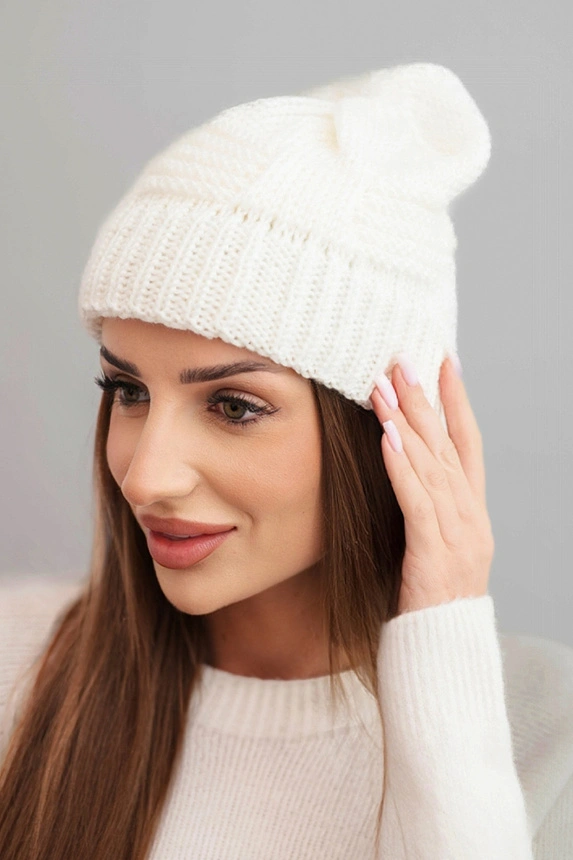 Moteriška žieminė kepurė akrilo su dekoratyvine pynė K462 ecru
