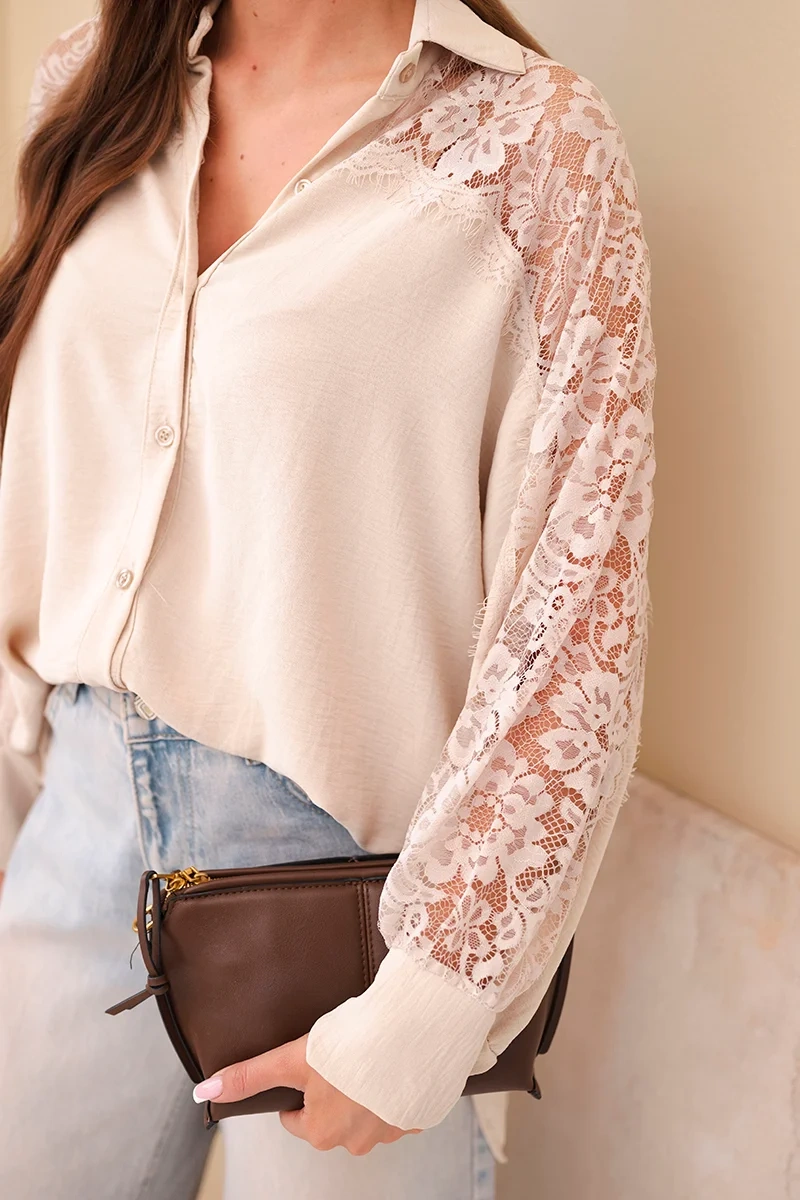 Stilinga moteriška palaidinė su elegantišku apykakle ir subtiliu mygtukų užsegimu yra ideali pasiūla moterims, vertinančioms klasę ir patogumą kasdieniame gyvenime. Modelis išsiskiria efektingomis nėrinių rankovėmis ir pečiais, kurie suteikia visumai išskirtinį charakterį. Laisvas siluetas užtikrina judėjimo laisvę ir komfortą visą dieną.