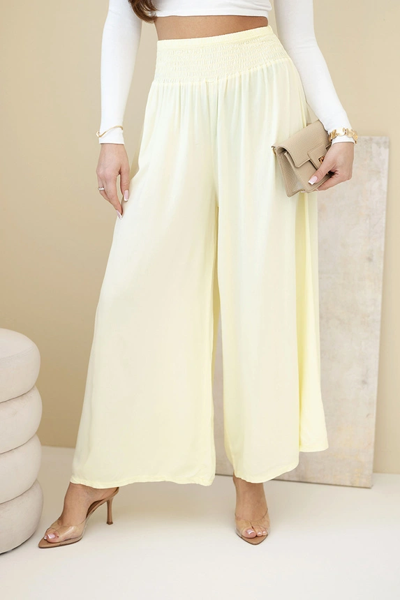Moteriškos viskozės kelnės su elastinga juosta geltonos