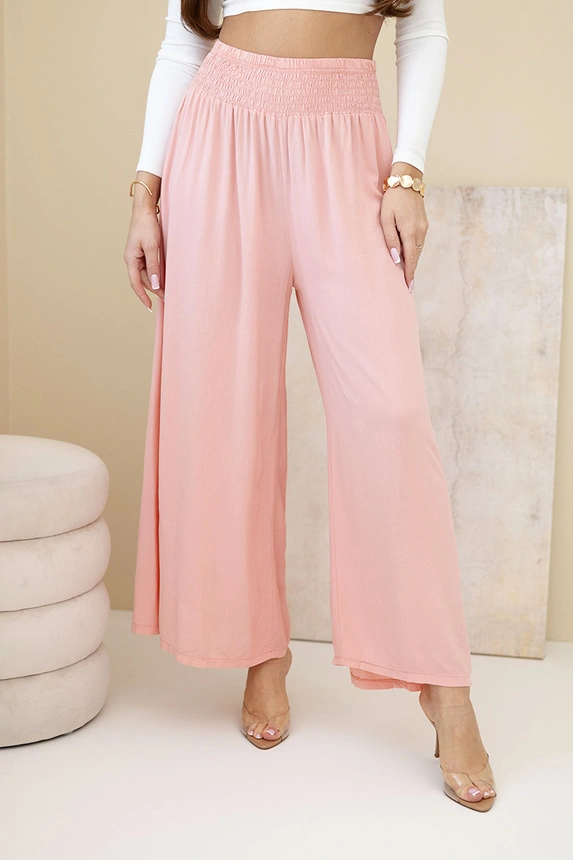 Moteriškos kelnės iš viskozės su elastingu juosmeniu abrikosų