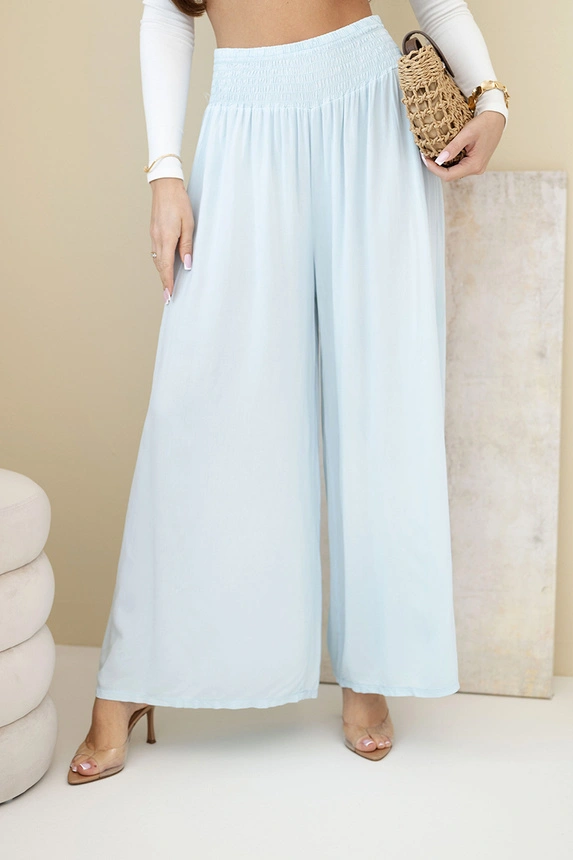Moteriškos viskozės kelnės su elastinga juosta nebieskie