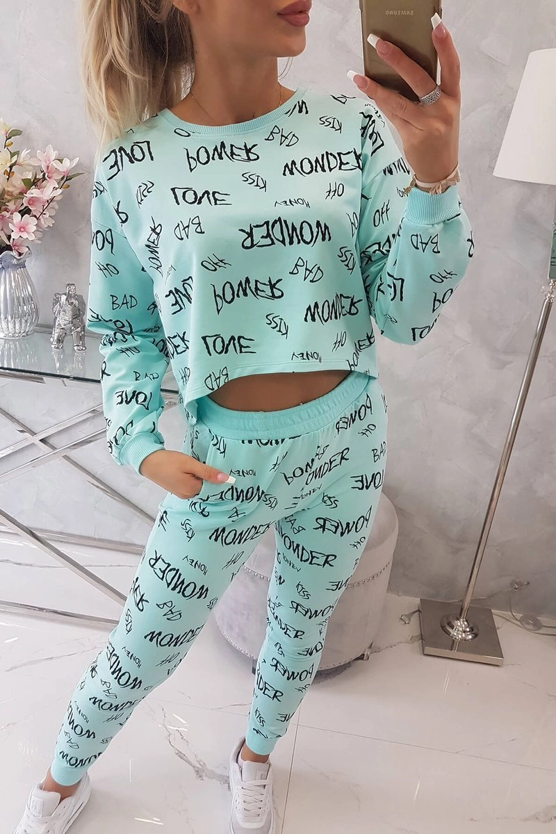 Prezentujemy Państwu komplet bluzki i spodni. Bluzka oraz spodnie z nadrukiem. Komplet wykonany jest z wysokiej jakości materiału. Rozmiar jest uniwersalny i będzie odpowiedni dla Pań w rozmiarze S, M lub L.