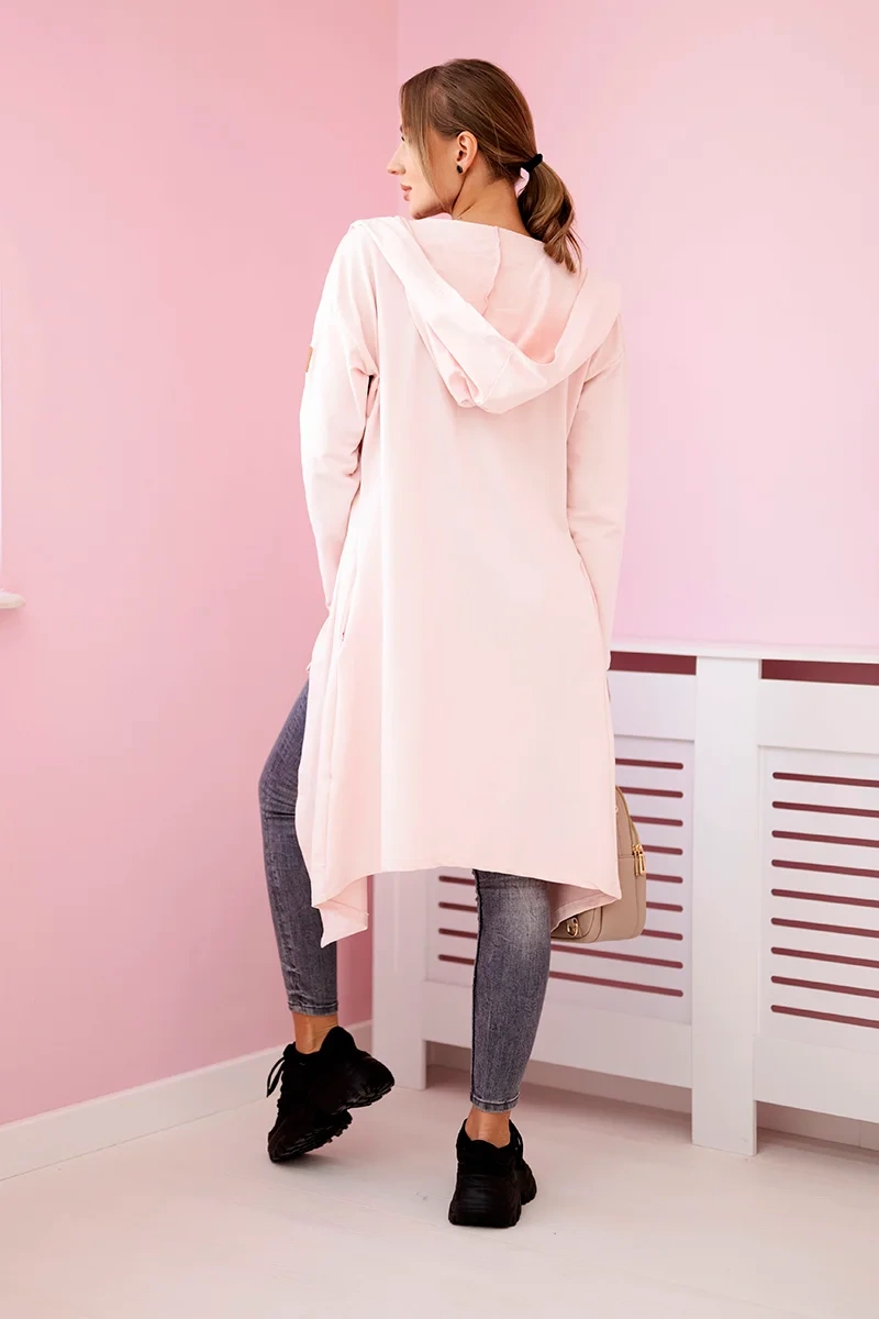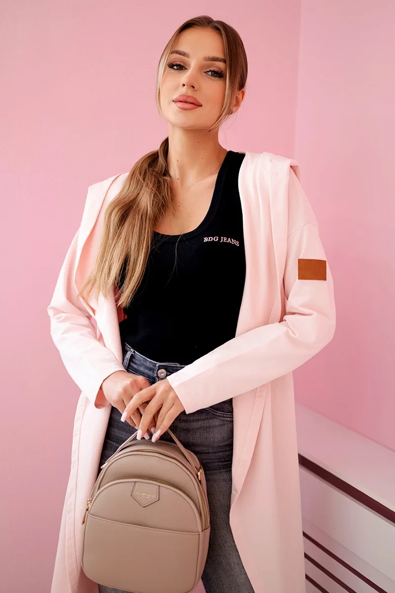 Narzutka długa z kapturem jasny pudrowy róż
