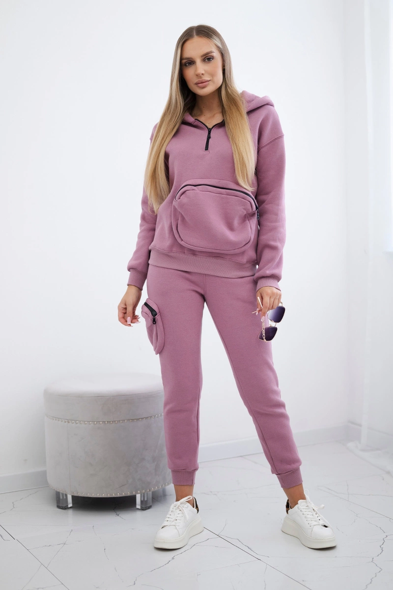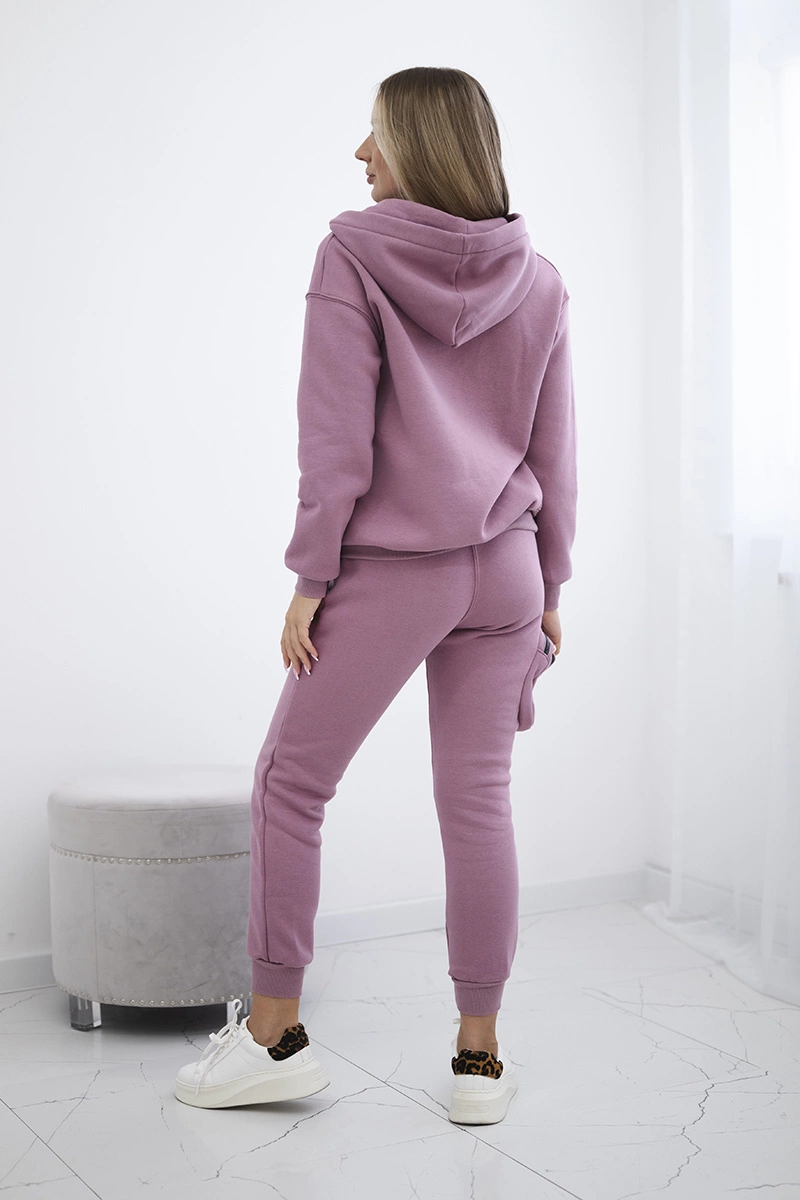 Prezentujemy Państwu komplet bluzy i spodni z napisem. Bluza posiada kaptur oraz naszytą kieszeń z przodu. Komplet wykonany jest z ocieplanego materiału. Rozmiar jest uniwersalny i będzie odpowiedni dla Pań w rozmiarze S, M lub L.